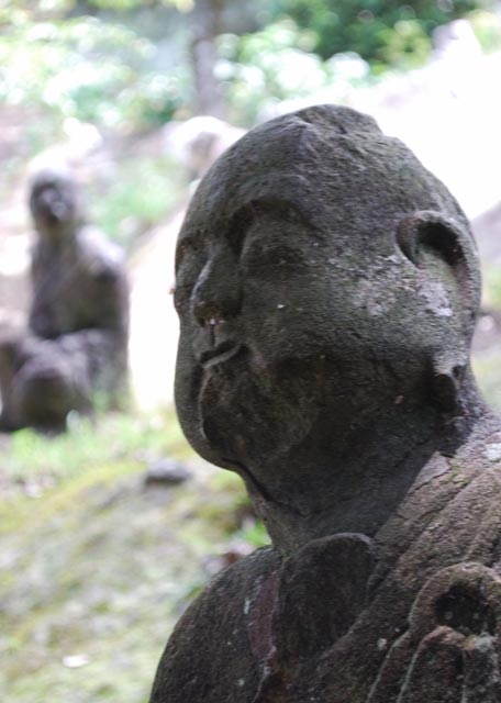 雲巌禅寺は、宮本武蔵が「五輪の書」を書いたという霊巌洞という洞窟を境内に持つ寺院で、五百羅漢は、その雲巌禅寺内にある石仏群のことです。